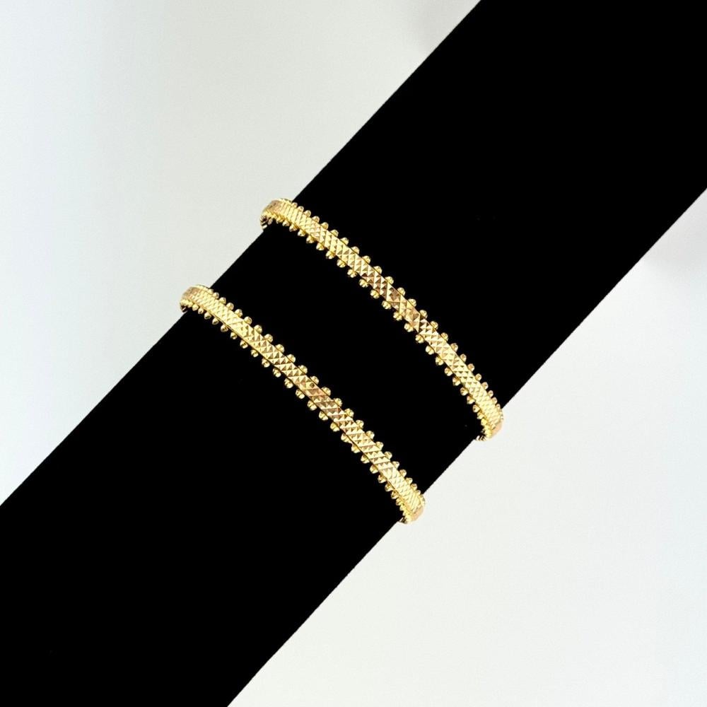 تألق بقطعة استثنائية مع هذه الغوايشة الفريدة المصنوعة من ذهب عيار 21. تتميز بتصميمها العصري الذي يمزج بين الأشكال الهندسية واللمسات الفنية المبتكرة، لتخلق تحفة فنية تعكس شخصيتك الفريدة. هذه الغوايشة ليست مجرد قطعة مجوهرات، بل هي بيان جريء للموضة والأناقة، مصممة خصيصًا لتلفت الأنظار وتبرز تميزك.