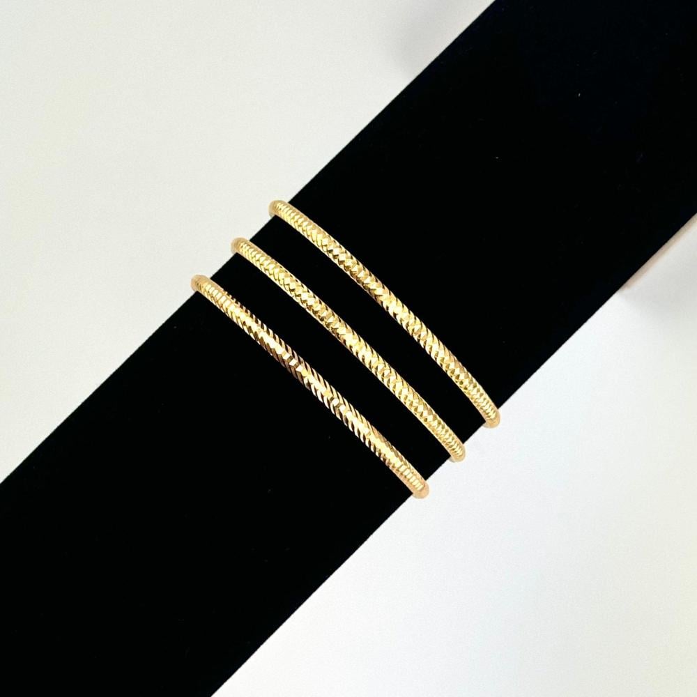 تجمع هذه الغوايشة بين الحلقات المتدرجة بشكل أنيق ومبتكر. مصنوعة من ذهب عيار 21، تعكس هذه الغوايشة الأناقة العصرية والتميز في تصميمها، لتكون خياراً رائعاً للمرأة العصرية التي تبحث عن قطعة مجوهرات تعبر عن شخصيتها الفريدة.