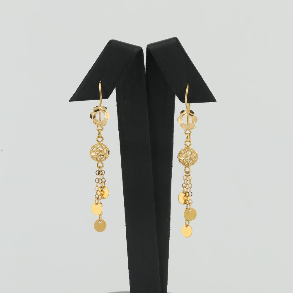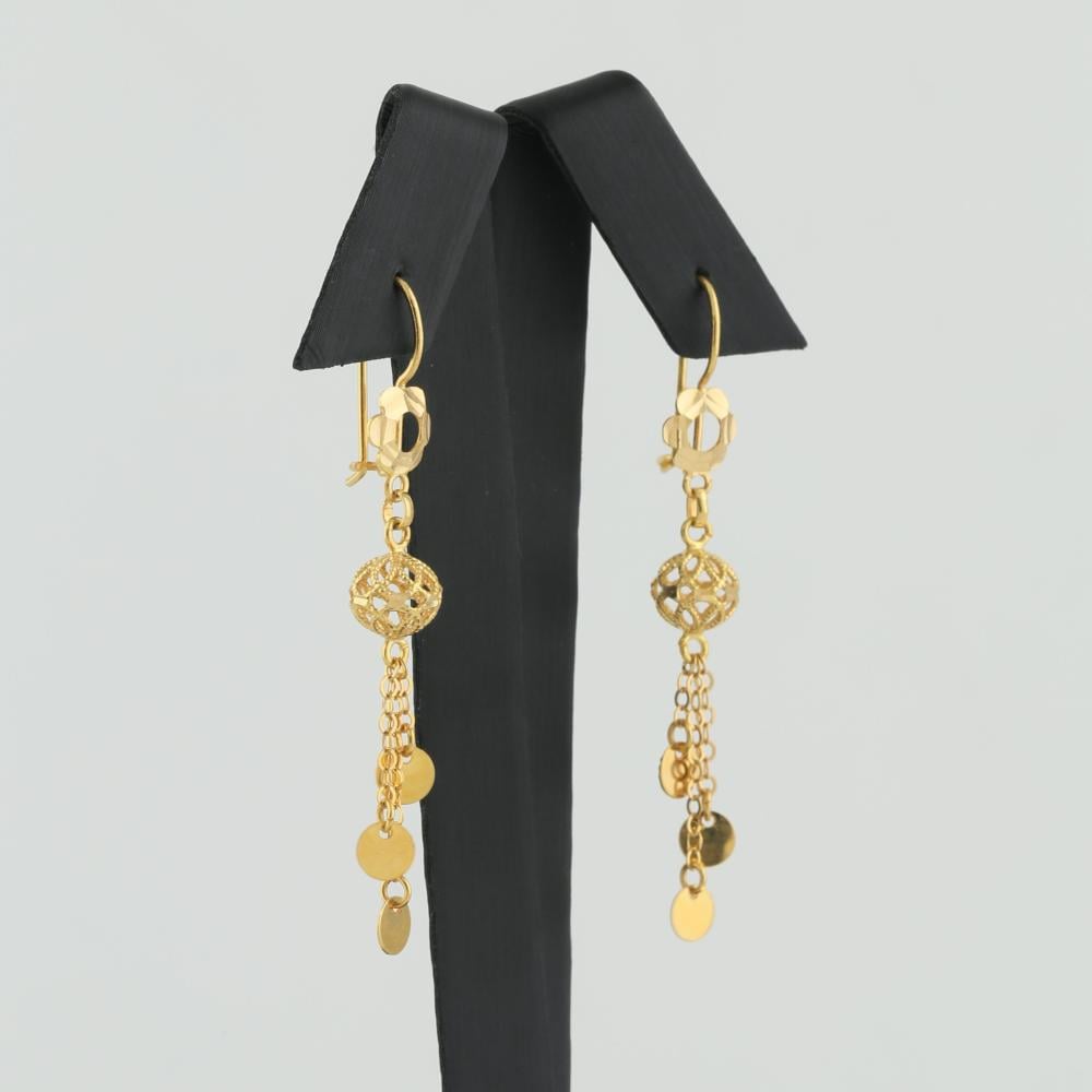 حلق ذهب زهرة مع كرة يتدلا منها قطع الذهب الدائري - عيار 21