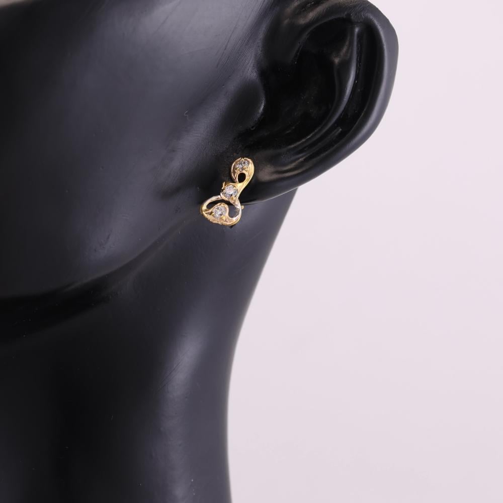 حلق ذهب ملتوي مع فصوص بيضاء - عيار 18