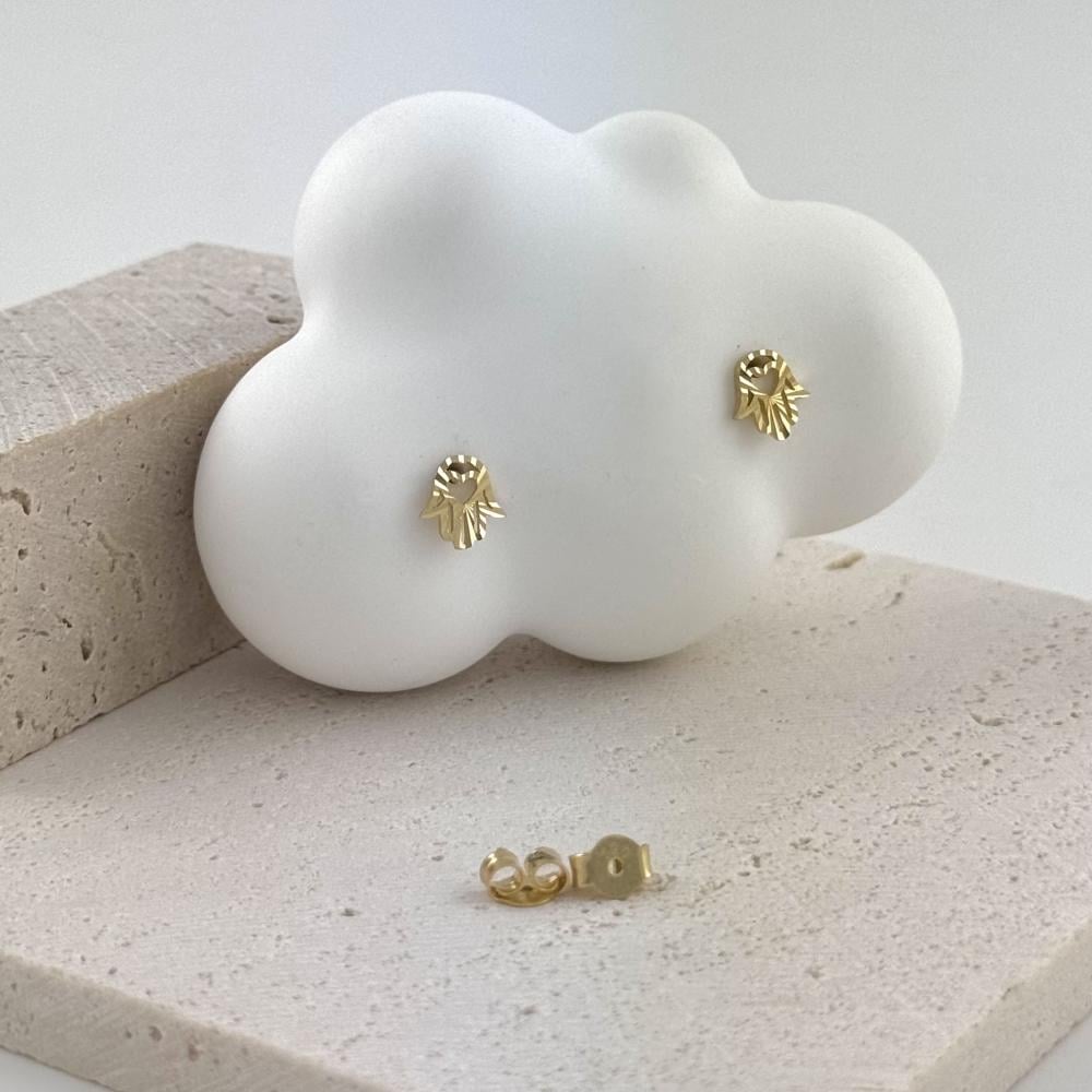حلقة ذهبية عيار 18 بتصميم كف اليد، تعكس لمسة من الحماية والأناقة. مثالية لإضفاء لمسة فريدة وجميلة على إطلالة صغيرك، مع ضمان الراحة والأمان.