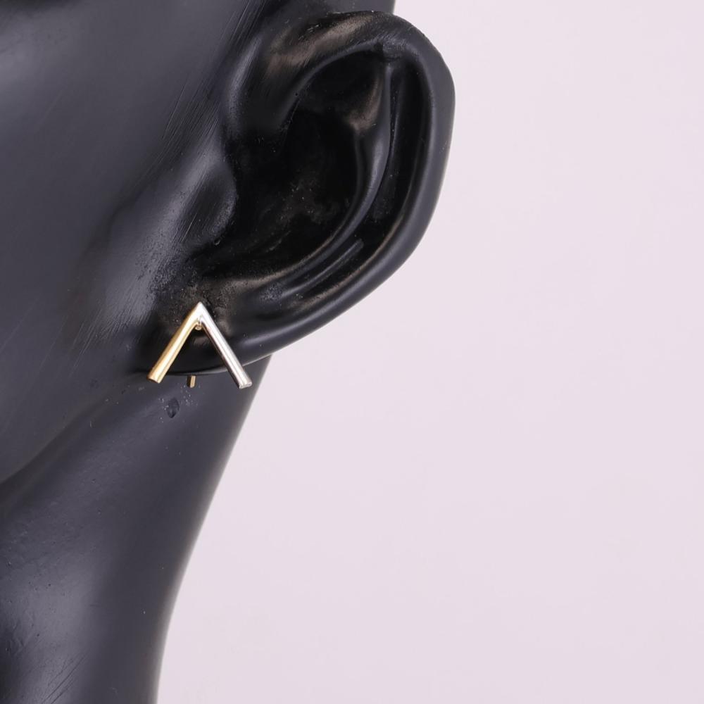 حلق ذهب V لونين الابيض و الاصفر - عيار 18