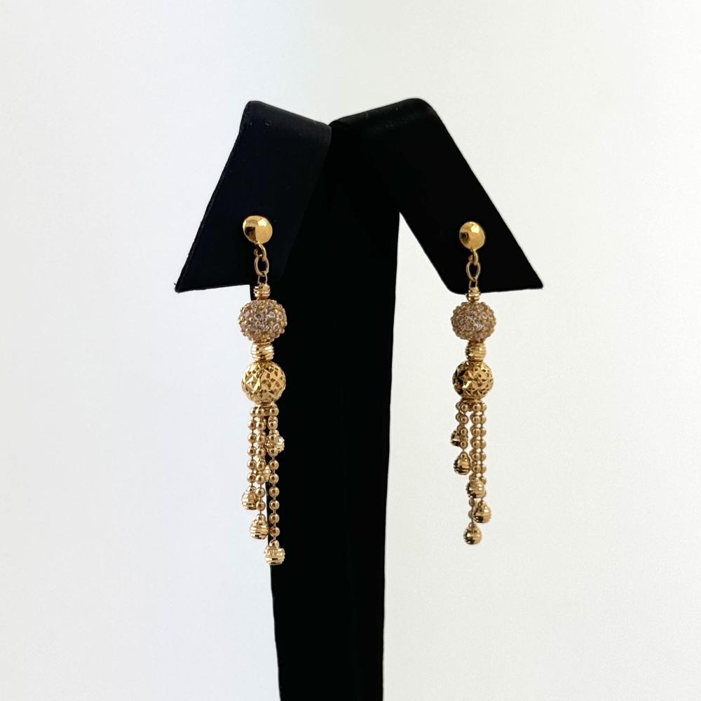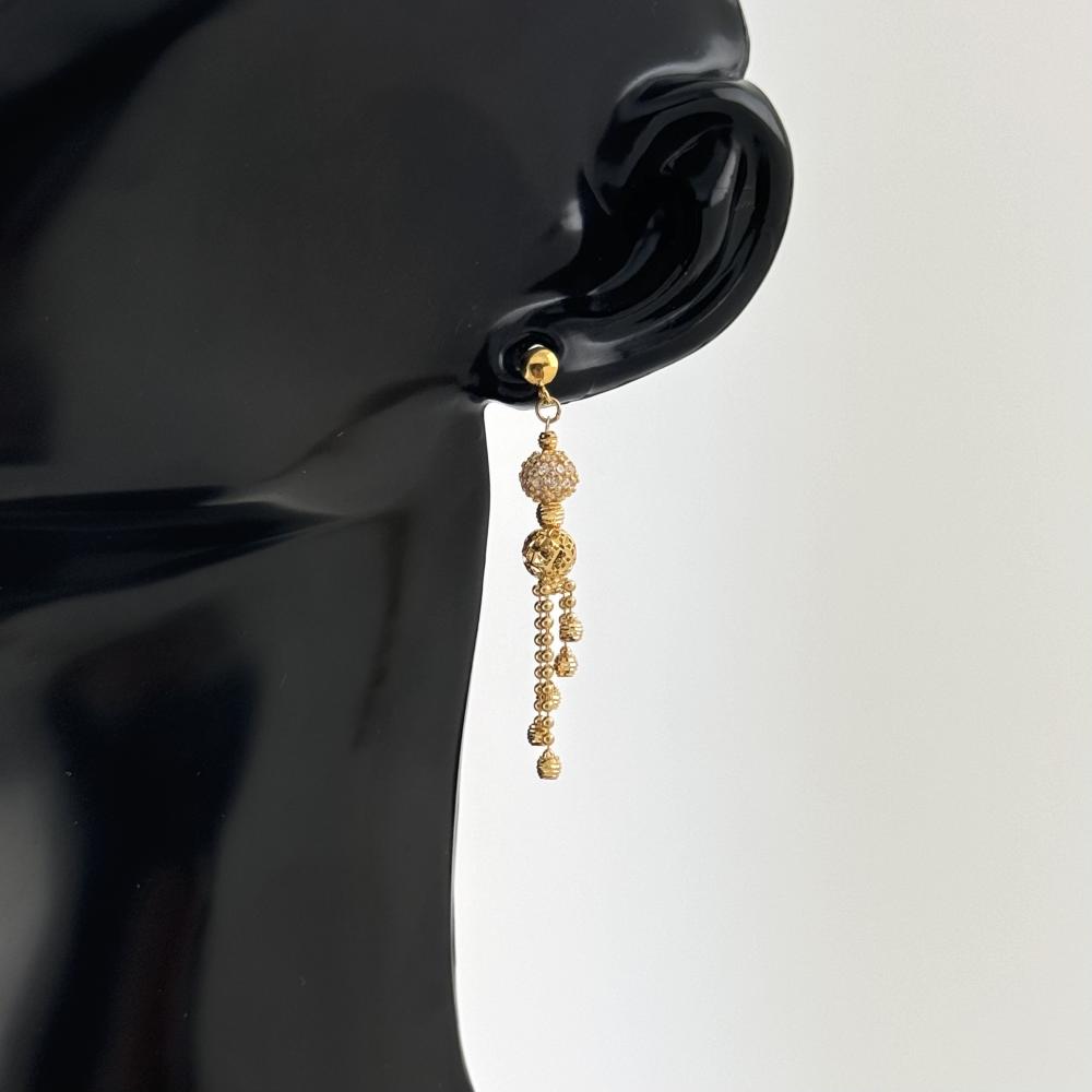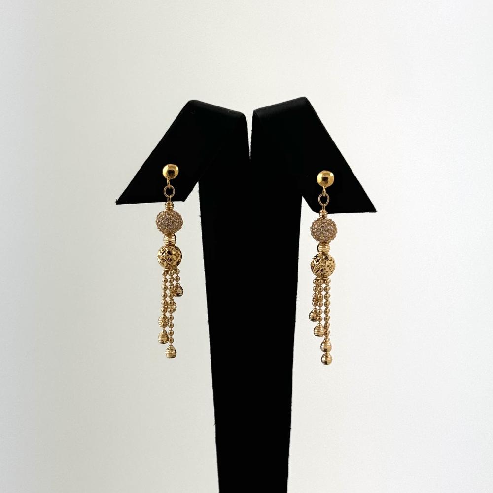 حلق ذهب كرت الذهب وكرة الزركون الابيض- عيار 21