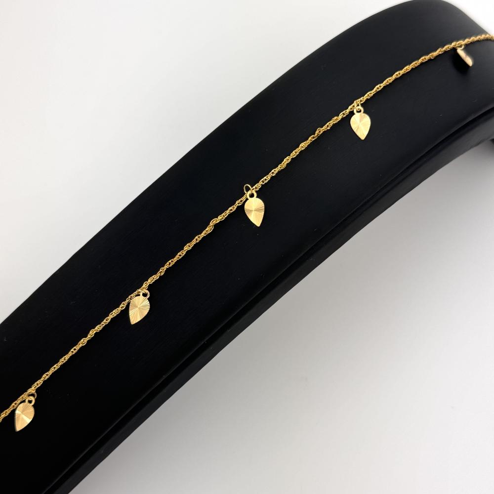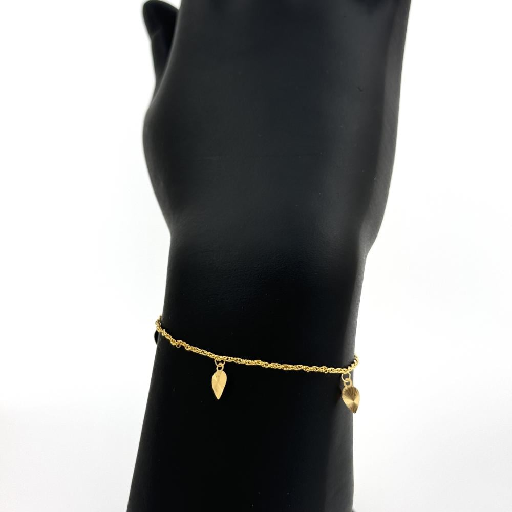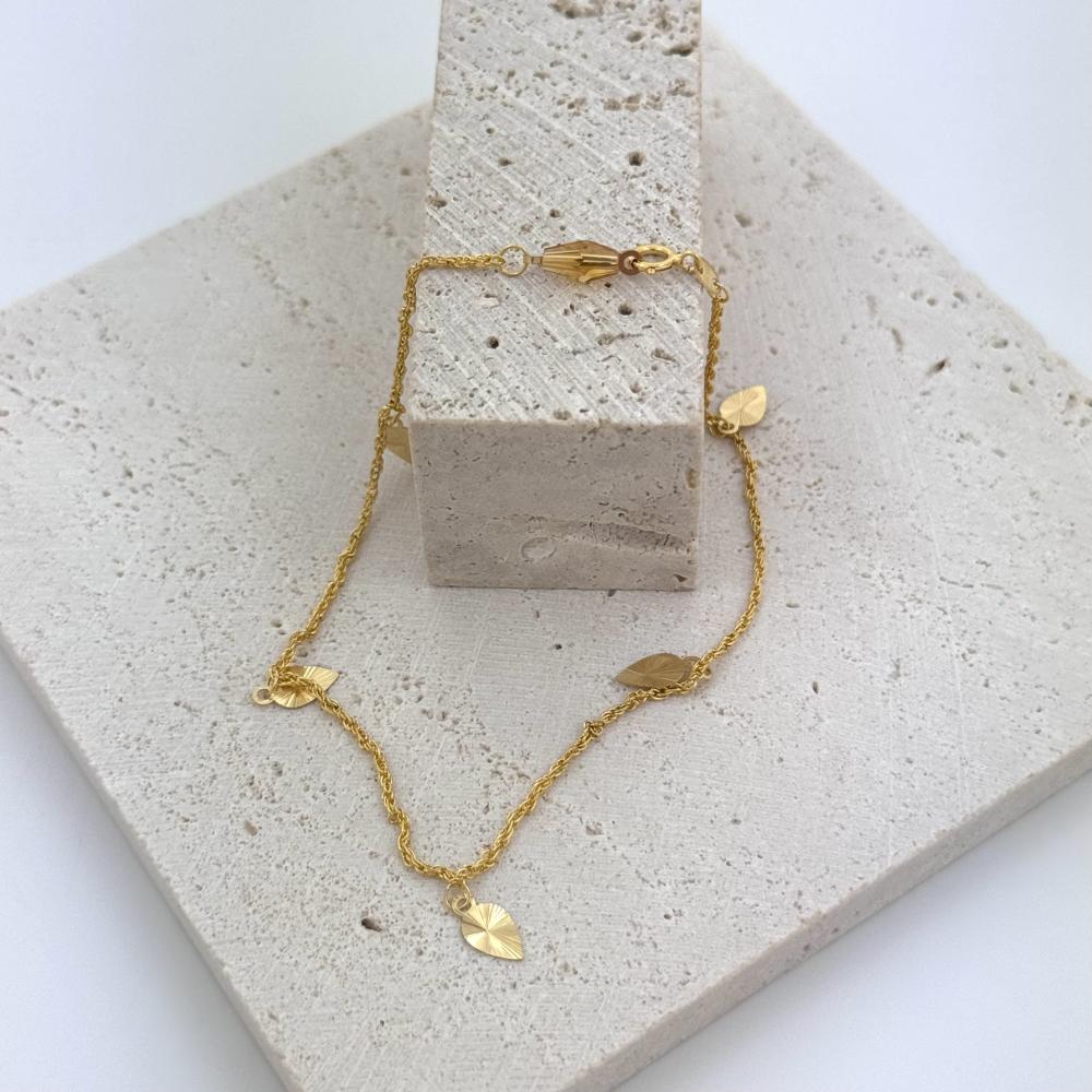 اسوارة ذهب مبروم مع أوراق الورود عيار 18 تتميز بتصميم مزين بأوراق ورود أنيقة. تضيف هذه الاسوارة لمسة من الرقي والجمال الطبيعي، مما يجعلها قطعة رائعة تعزز من أناقتك وتكمل إطلالتك بأناقة متميزة.