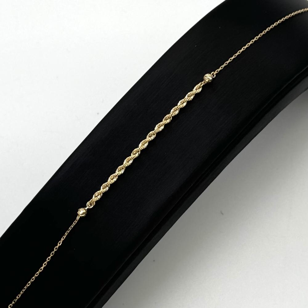 استمتع بسحر الأناقة مع اسوارة ذهبية مبرومة، مع كرتين ليزر، عيار 18. تصميم راقي يجمع بين لمسة الفخامة للذهب والعصرية للكرات الليزرية، مما يضفي جاذبية فريدة لإطلالتك.
