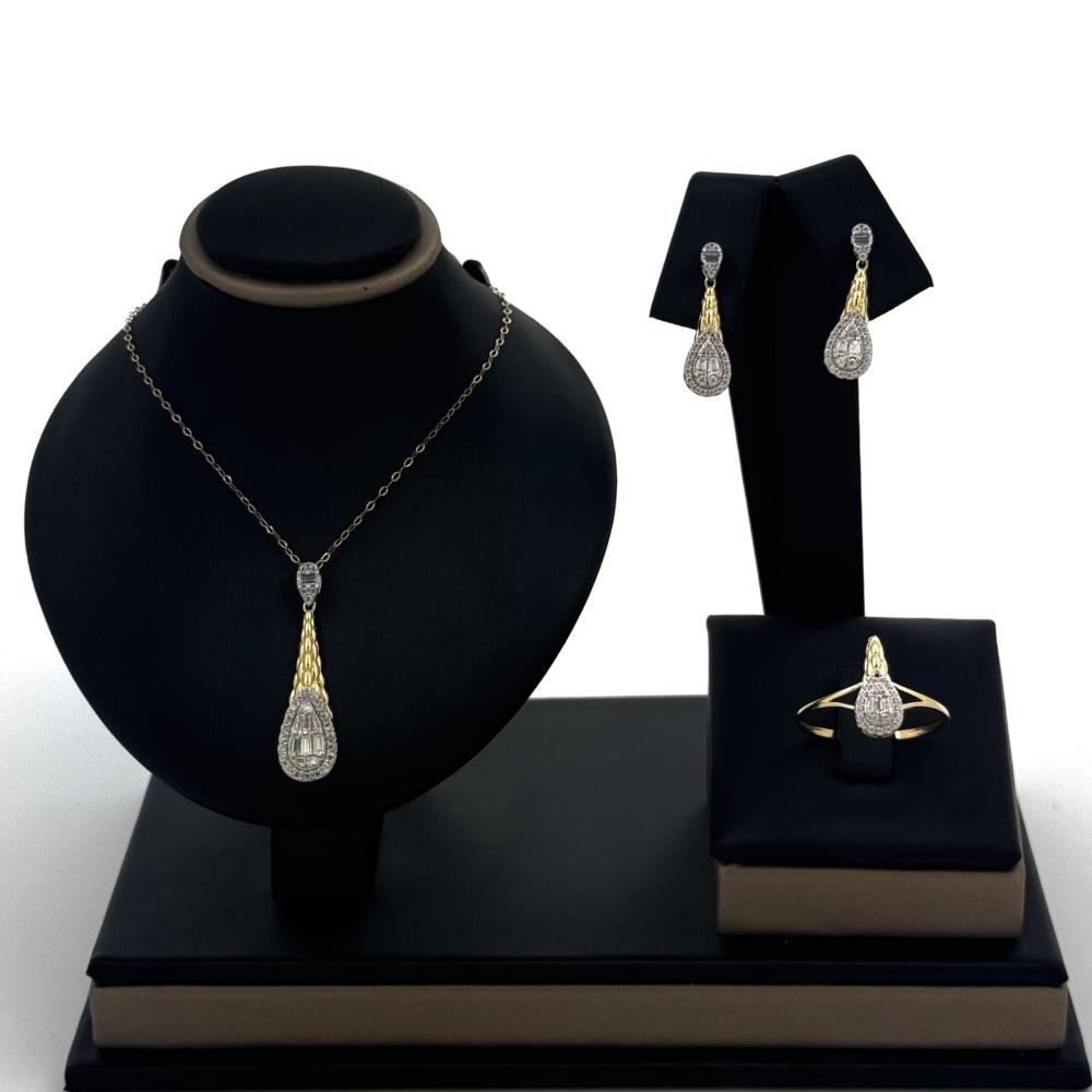 أضفي لمسة من البريق إلى يومك مع نصف طقم ذهب عيار 18 تصميم الماس من مجموعة أكسترا. هذا النصف طقم بتصميمه العصري والأنيق سيجعل إطلالتك مشرقة وجذابة في جميع المناسبات. استمتعي بالفخامة والأناقة التي يقدمها هذا النصف طقم المميز.