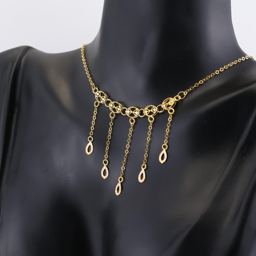 إطلالة ملكية مع مخنق ذهب سعودي فاخر من ذهب خالص عيار 21. تصميم يعبّر عن الأصالة والفخامة بأسلوب يلفت الأنظار.