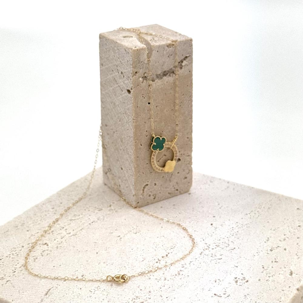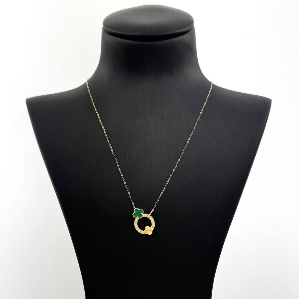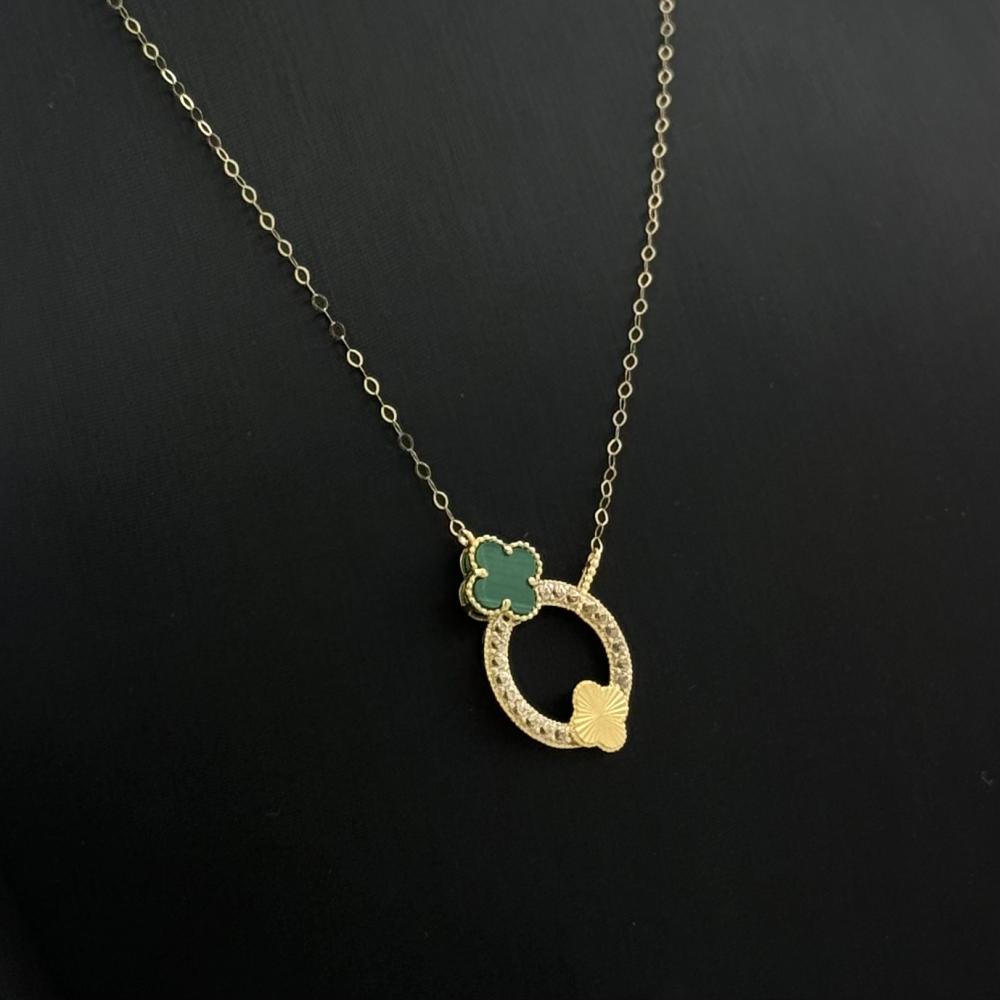 عقد ذهب الزهرة المشهورة بلونين الاخضر و الاصفر تصميم الماس - عيار 18