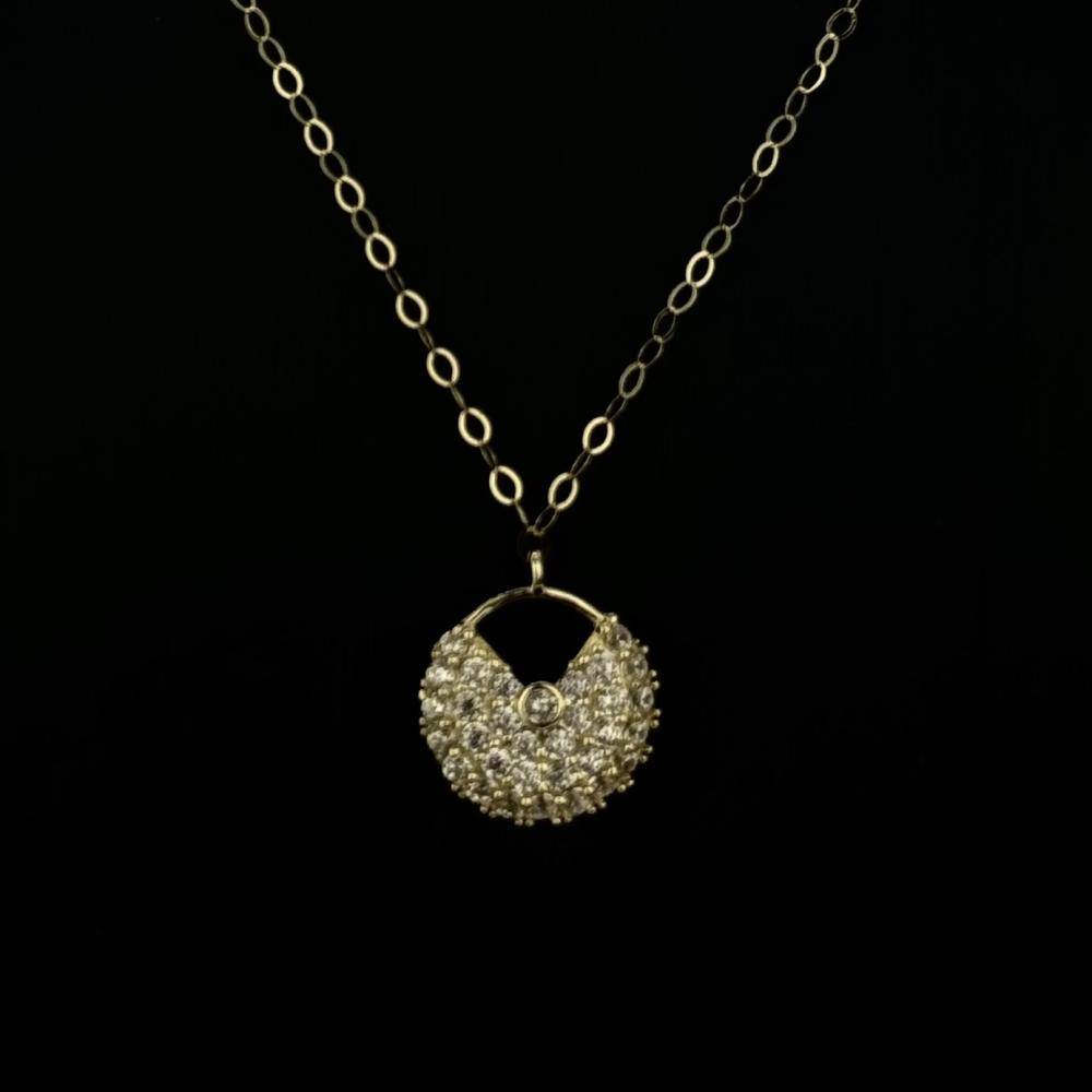 تألقي بعقد ذهب عيار 18 دائري مع رسم ماسي يلمع بأناقة لا مثيل لها. تصميمه الفاخر يضفي لمسة من الرقي والجمال على إطلالتك.