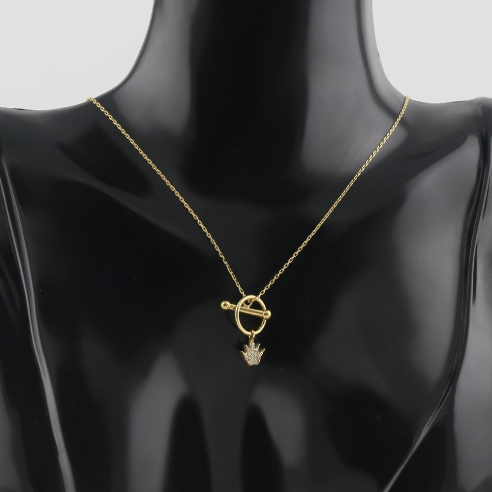 عقد ذهب دائري مع تاج الملكي تصميم الماس - عيار 18