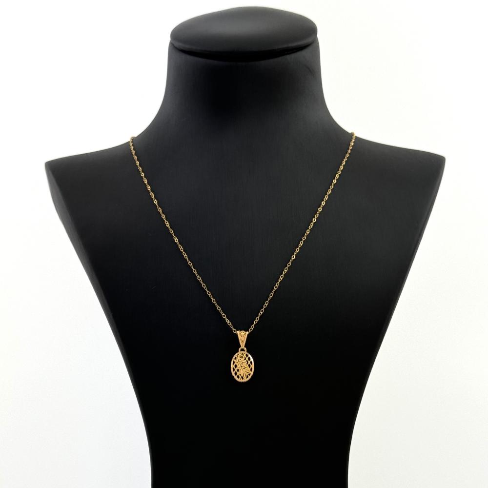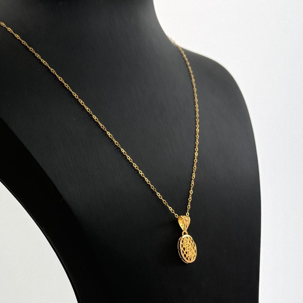 عقد ذهب بيضاوي الشكل داخله ورق الزيتون - عيار 21