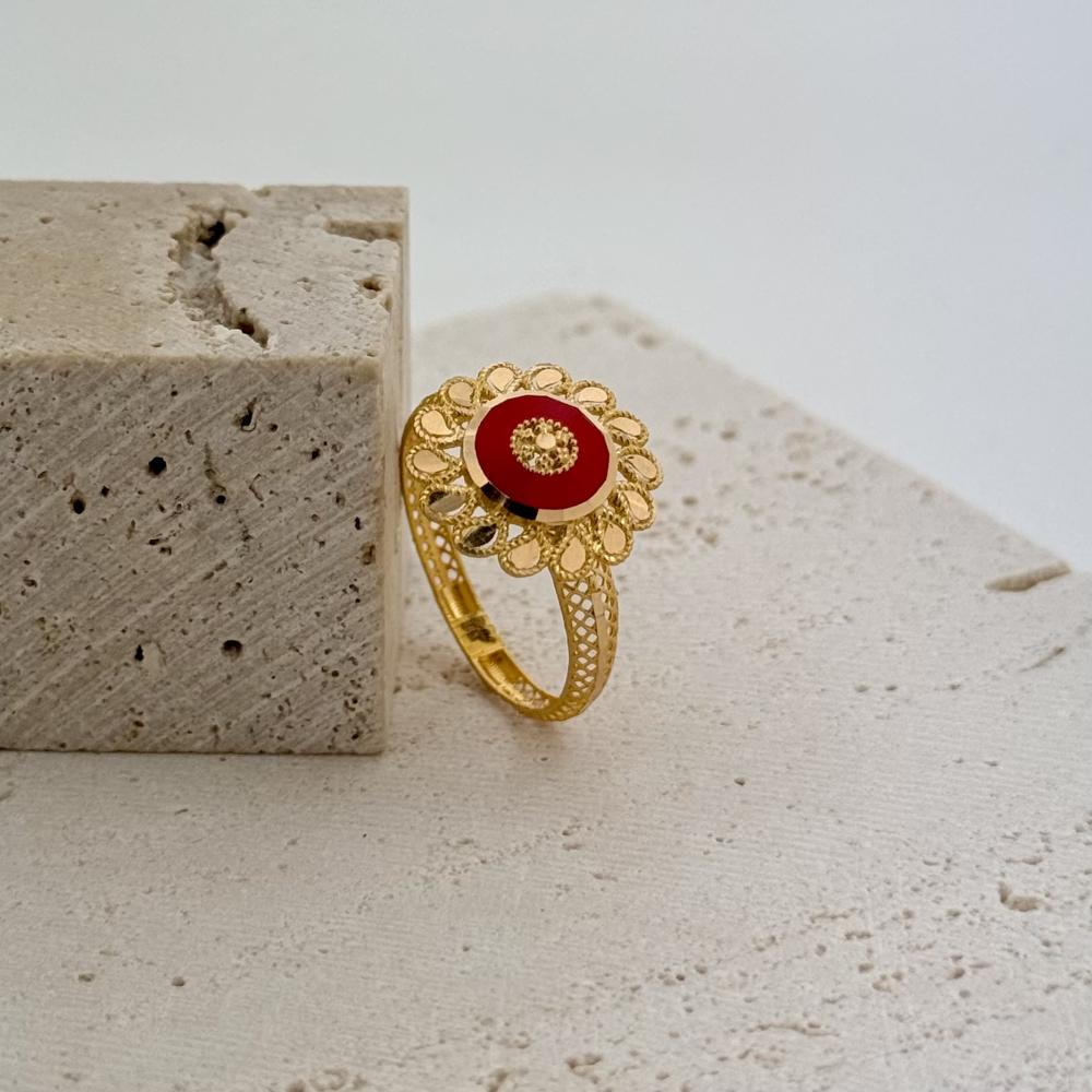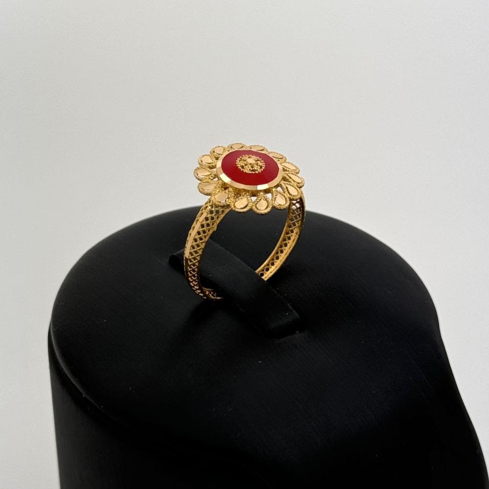 خاتم ذهب خاتم ذهب ورق الزيتون يتوسطه لون احمر- عيار 21