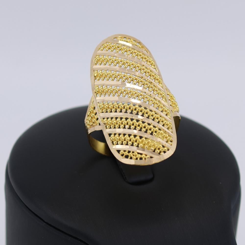 خاتم ذهب عريض من الذهب الصافي عيار 21، تصميم فخم يبرز حضورك بكل أناقة ويمنحك إطلالة راقية تليق بذوقك الرفيع.