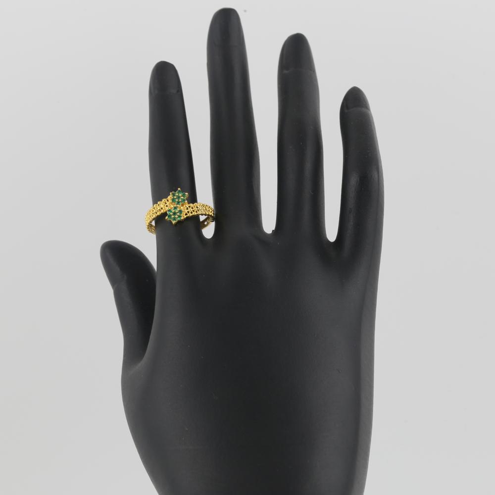 خاتم ذهب زهرتين خضراء - عيار 21
