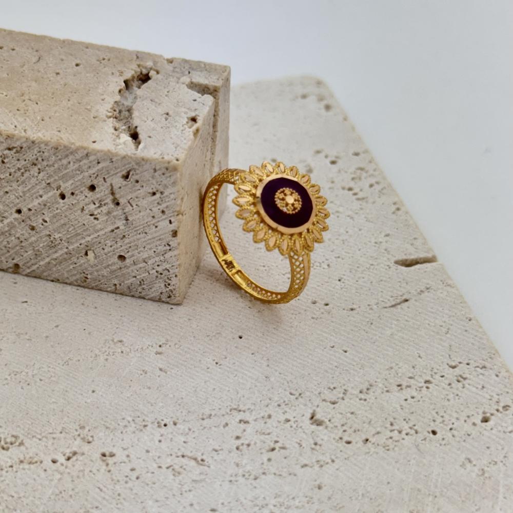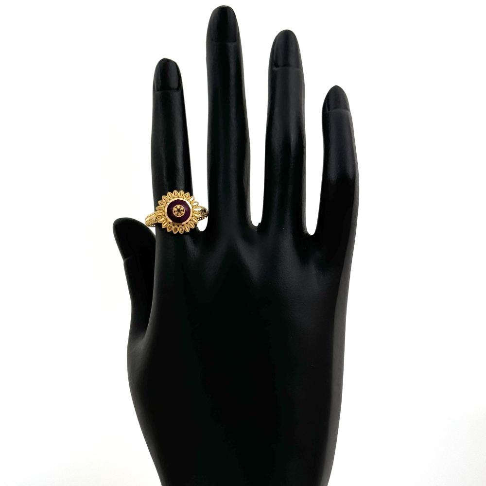 خاتم ذهب ورق الزيتون يتوسطه دم الغزال- عيار 21