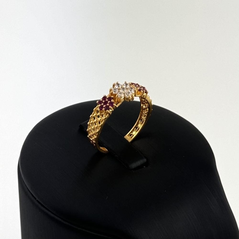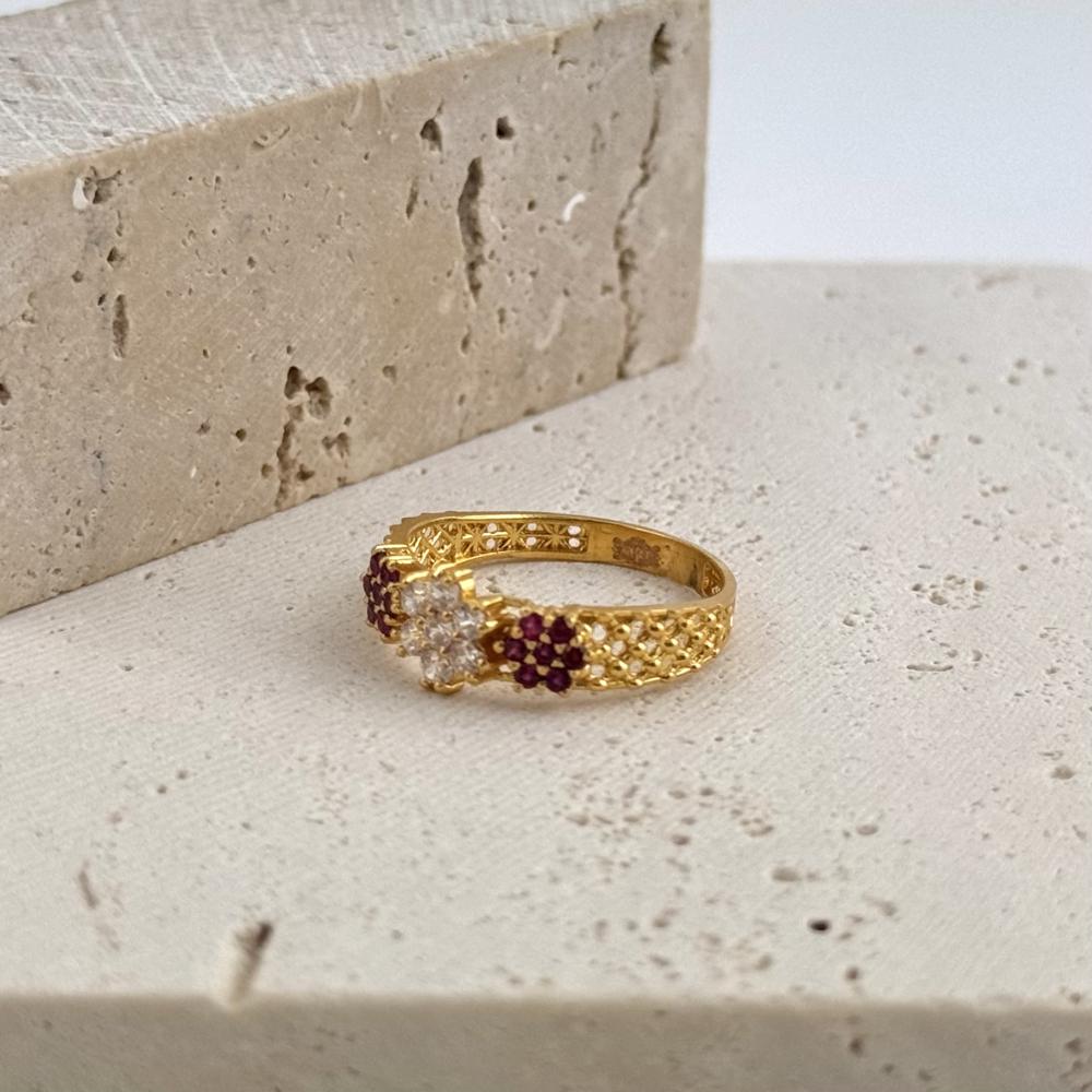 خاتم ذهب ثلاث ازهار ابيض وزهرتين بنفسجي - عيار 21