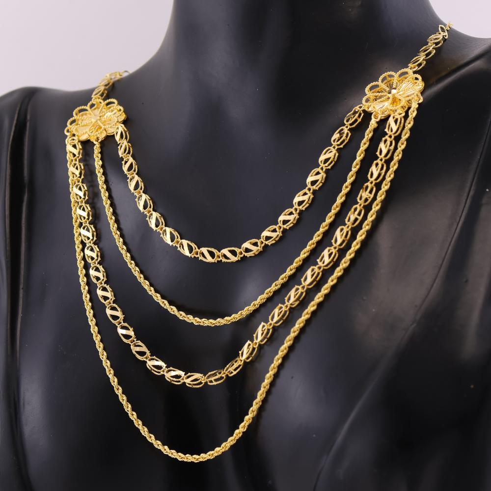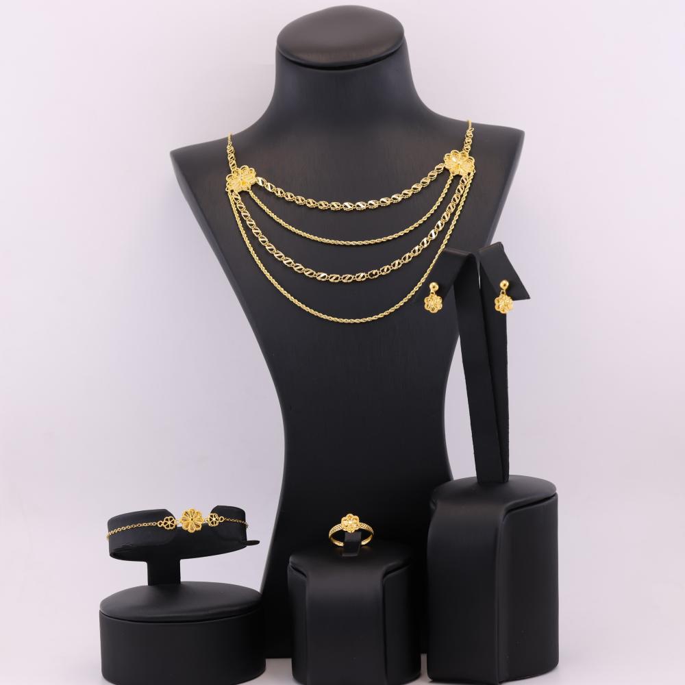 طقم ذهب اربعة ادوار ازهار مبروم ومستطيلات الذهب - عيار 21
