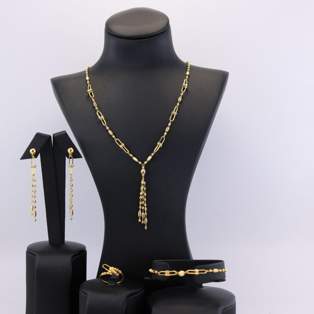 طقم ذهب 21 قيراط بتصميم هندسي متنوع من الذهب الصافي يعكس جرأة الأناقة وروعة التفاصيل.