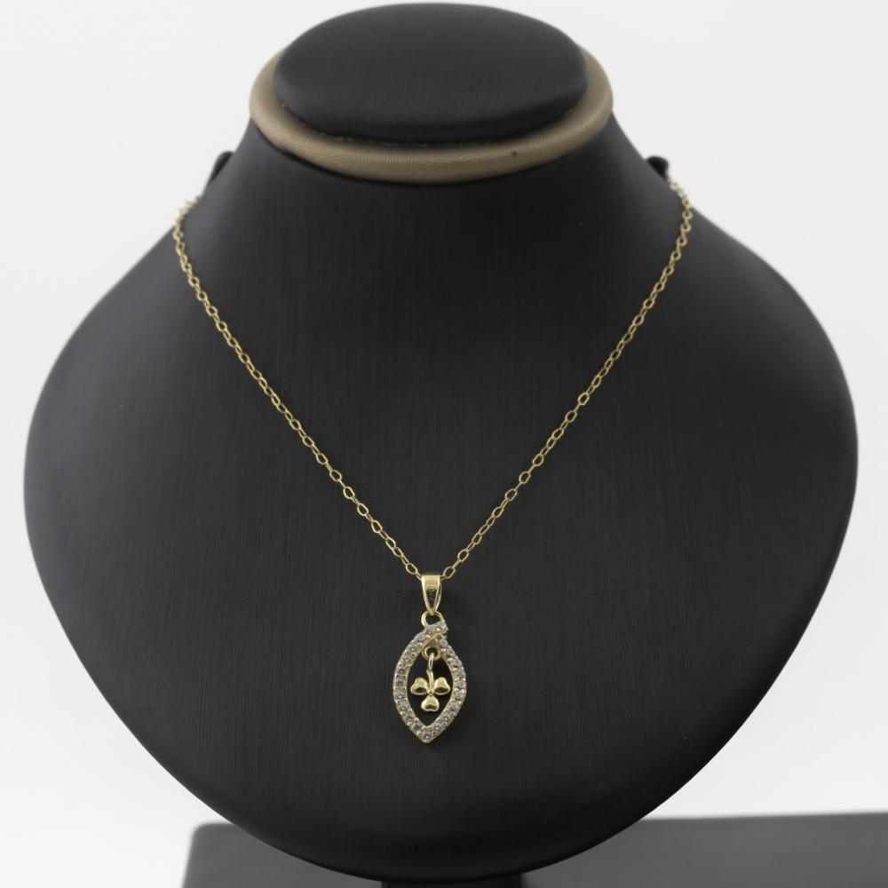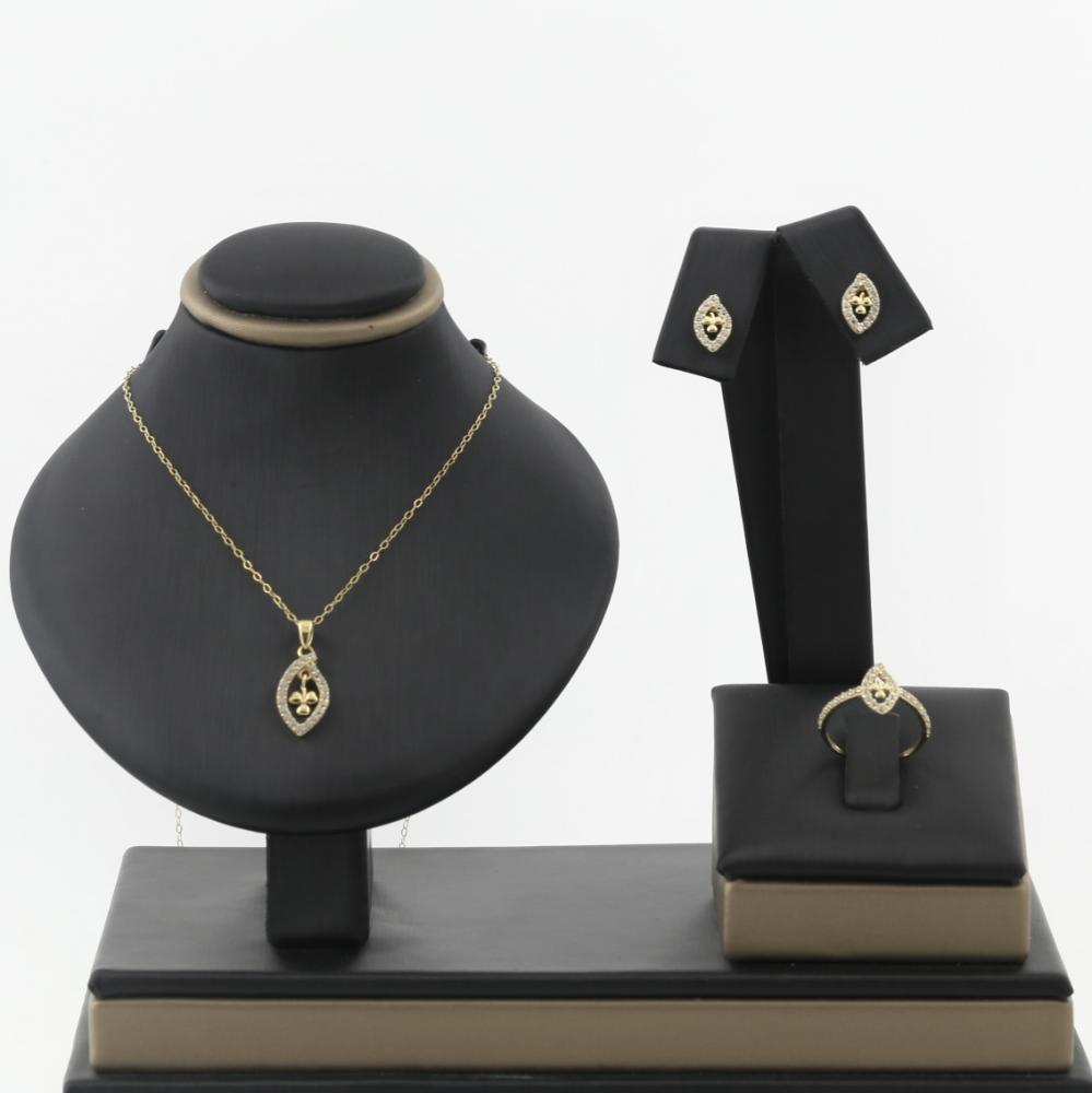 طقم ذهب اطفال ورقة الزركون داخلها زهرة - عيار 18