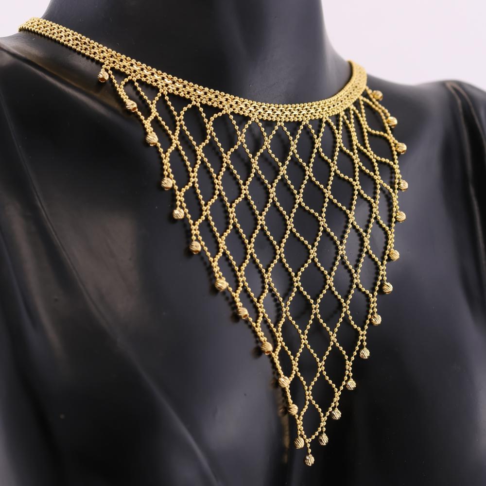 طقم ذهب أعراس فاخر من الذهب الصافي، مصنوع من ذهب عيار 21، بتصميم أنيق ومميز يليق بأجمل لحظات العمر ويضفي لمسة من الفخامة والرقي على إطلالتك في ليلة الزفاف.