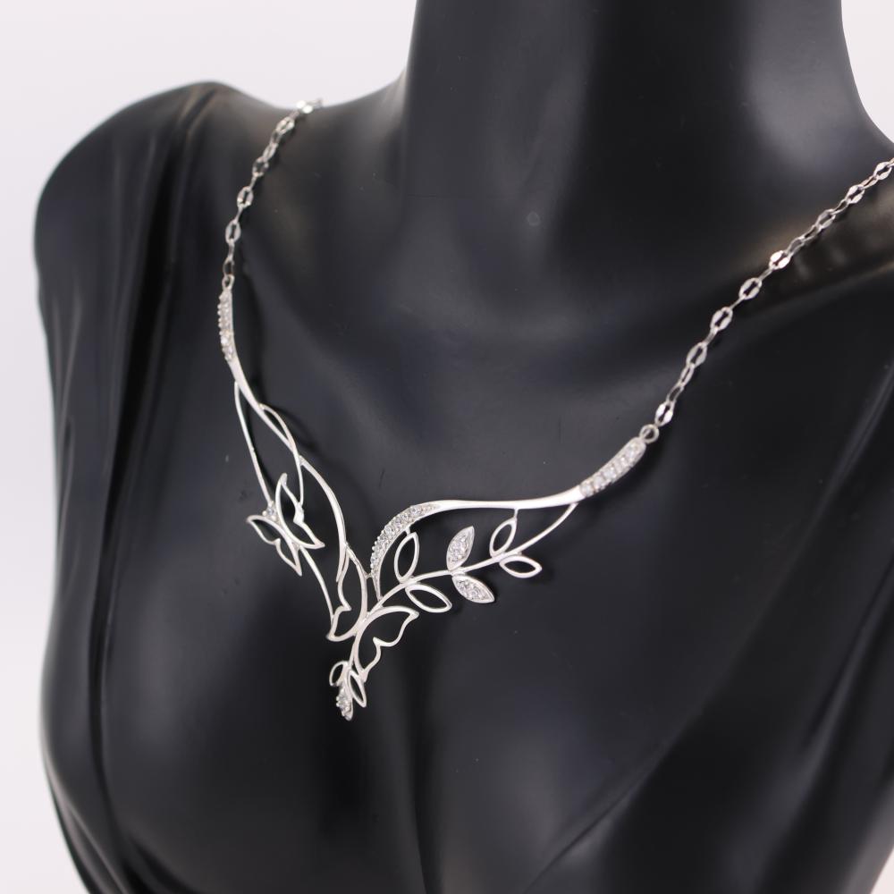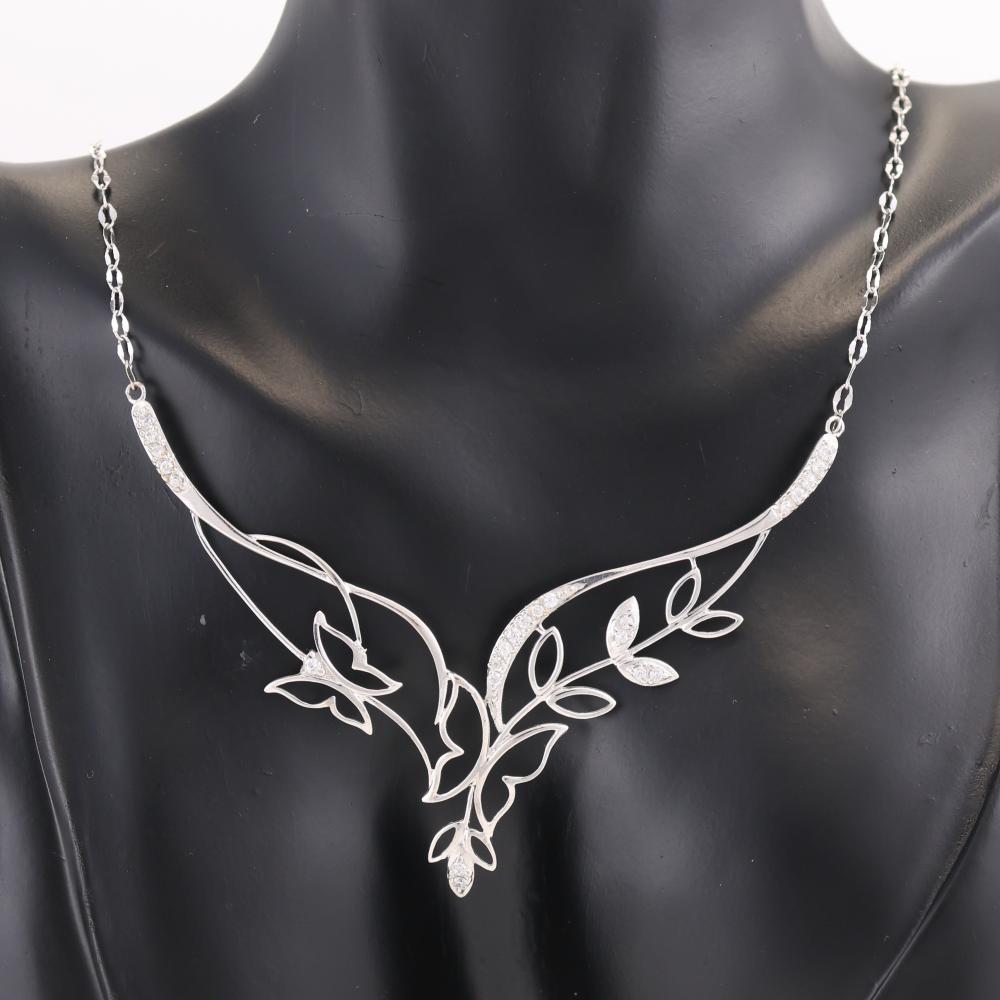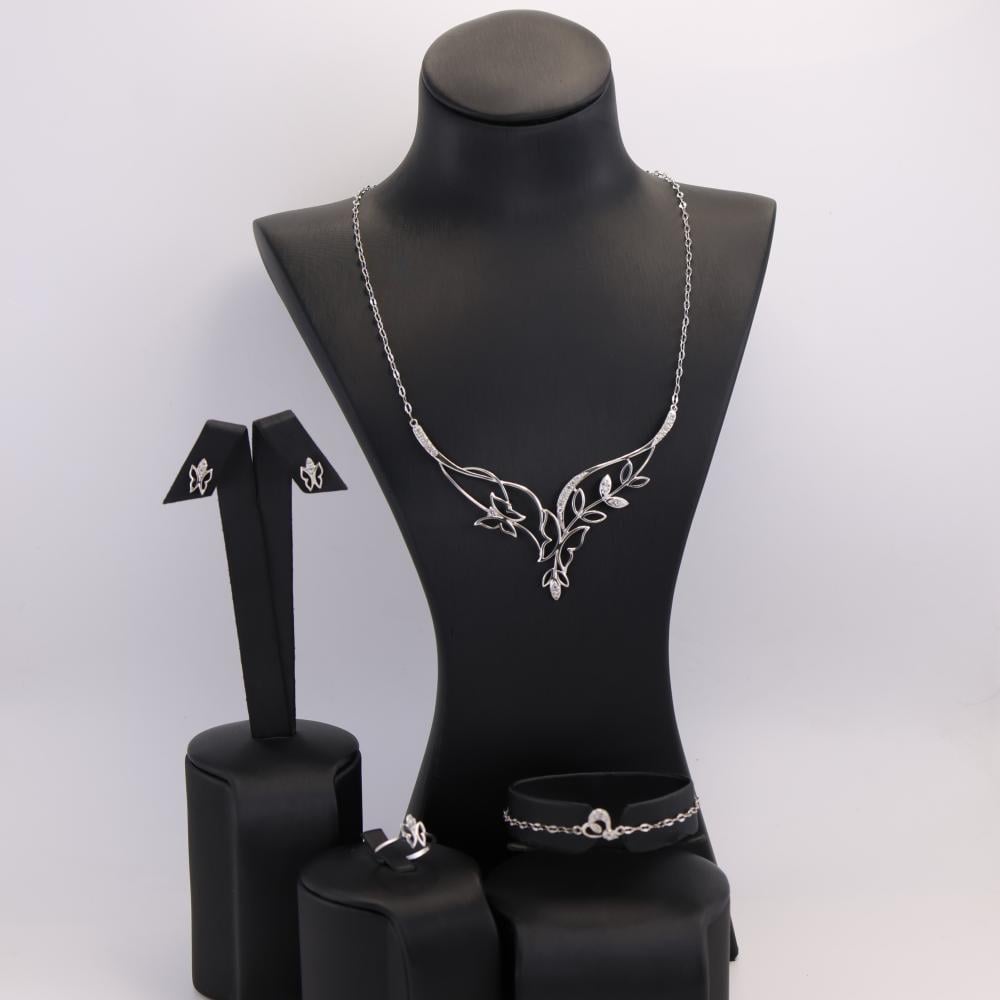 طقم ذهب أبيض 18 قيراط بتصميم غصن وفراشات ينبض بالأنوثة والرقي.